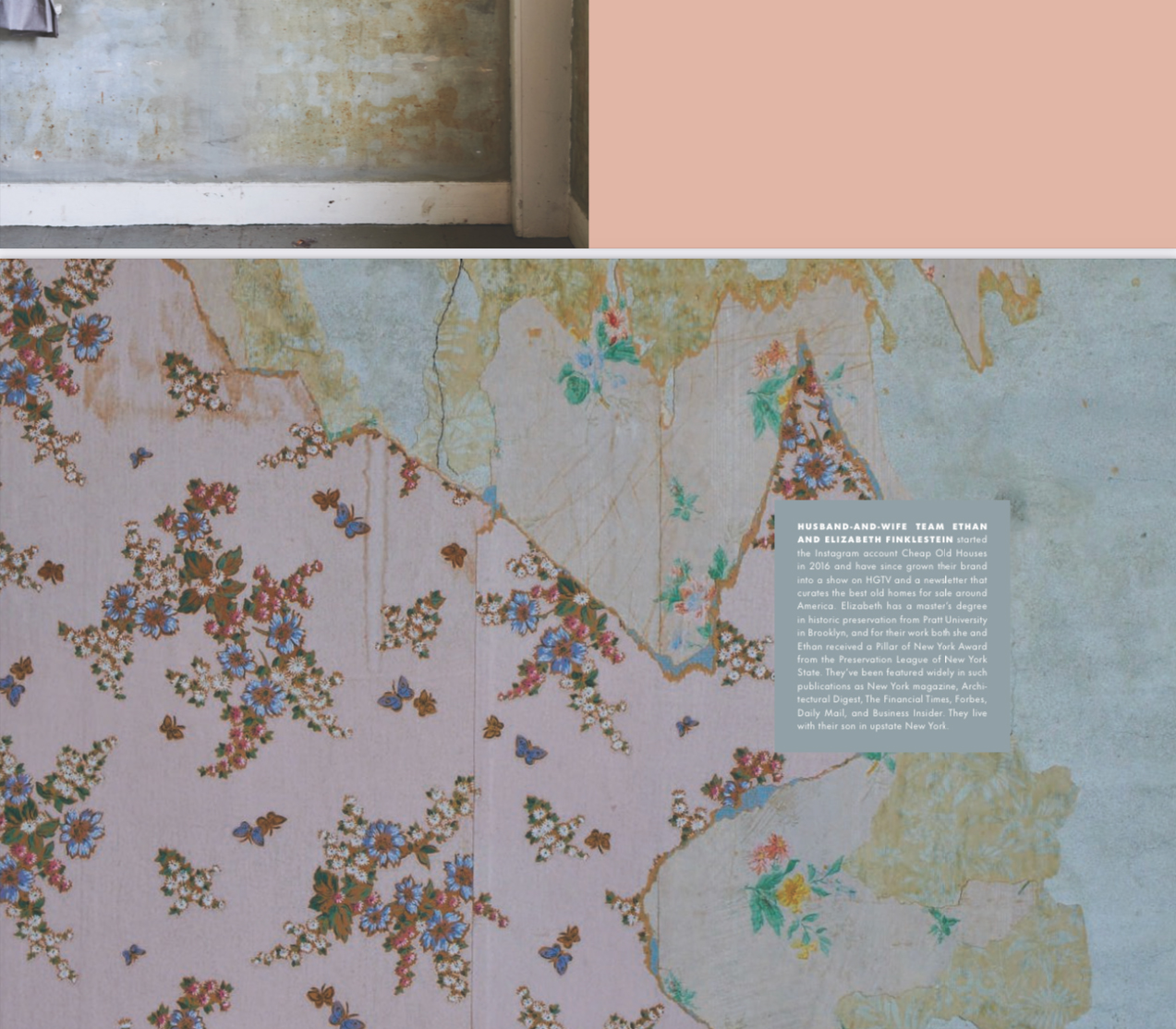 From the founders of the HGTV show and viral Instagram feed Cheap Old Houses comes a stunning collection of beautiful, affordable homes and inspiration for buying and restoring an historic house. Elizabeth + Ethan Finkelstein started the Instagram account @cheapoldhouses in 2016 and have since grown the brand into a show on HGTV and a cultural movement that has helped thousands of people find and restore their own pieces of heaven. Elizabeth has a master’s degree in historic preservation, and for their work both she and Ethan received a Pillar of New York Award from the Preservation League of New York State. They’ve been featured widely in such publications as New York Magazine, Architectural Digest, The Financial Times, Forbes, Buzzfeed, and Business Insider, and on programs such as The Drew Barrymore Show, Today and Good Morning America. They live with their son and rescue dog in upstate New York, where they are restoring their own cheap old farmhouse.